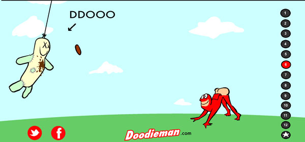 設置完成后,點擊右側標有1-12的按鈕,玩家就能操控大便超人對人偶釋放大便攻擊。