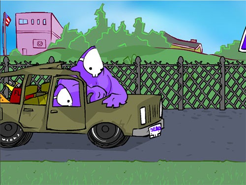 游戲的開端是大力士開著車送兒子去幼兒園,整個故事便從這里拉開了序幕。