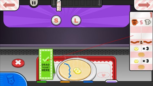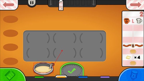 確認訂單后進入廚房操作區域,將面糊拖動到烤盤上進行烘烤。