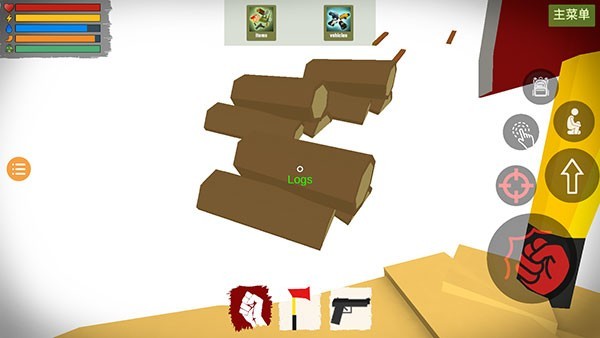 點擊右上角的【背包】圖標,就能查看當前的物品庫存,以及工藝和建筑的列表。