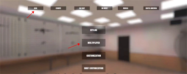 進入游戲主界面后,選擇亞洲區域,再點擊多人游戲選項。