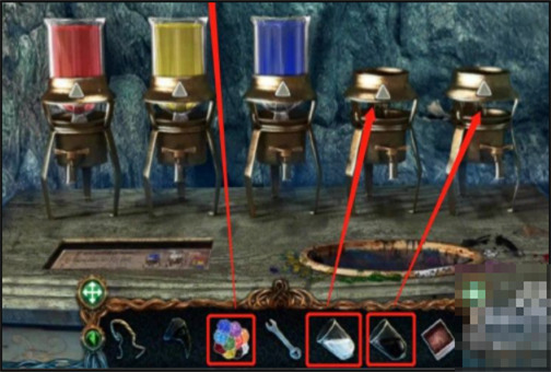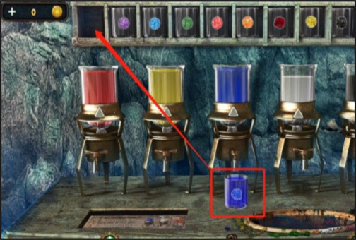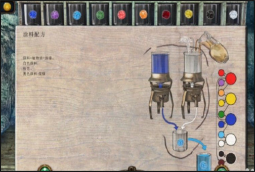第一個(gè)燒瓶需要調(diào)配成藍(lán)色,所以只需在藍(lán)色原料瓶下方轉(zhuǎn)動(dòng)兩次按鈕就能完成調(diào)配。調(diào)配好后把燒瓶放回原位,接著處理下一個(gè)燒瓶繼續(xù)操作。