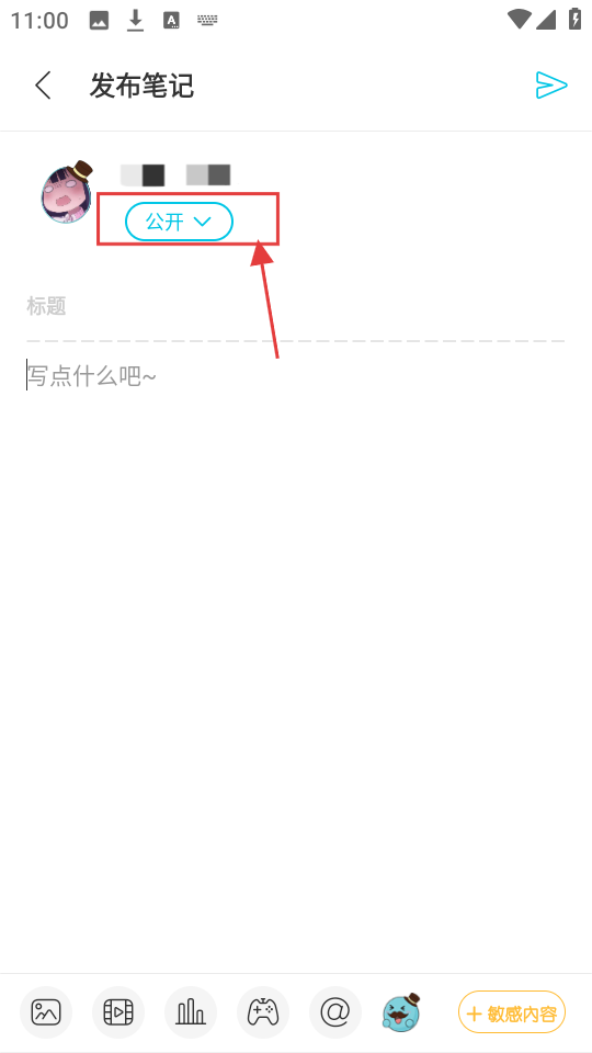 在發布筆記的頁面點擊【公開】按鈕,就可以選擇筆記的隱私設置,這個功能挺實用的。