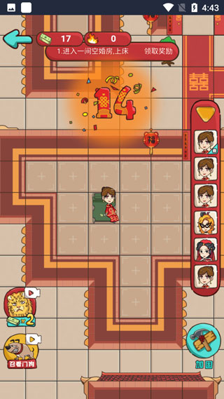 這款游戲卡通風(fēng)格十分鮮明,以婚禮場景為依托,對經(jīng)典的猛鬼宿舍玩法進(jìn)行了全新演繹。 2、提供新娘與新郎雙主角切換功能,帶來滿滿挑戰(zhàn)性。 3、玩家需合理規(guī)劃資源,守護(hù)好房門,同時借助道具提升自身防御能力。 4、游戲過程中不看廣告也能獲取道具獎勵,讓體驗(yàn)更加順暢。