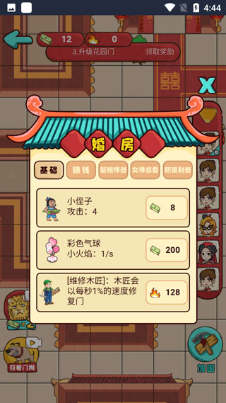 采用喜慶婚禮風(fēng)格,把傳統(tǒng)躺平玩法和婚慶元素相融合,打造出全新的主題體驗(yàn)。 2、作為抖音近期的熱門小游戲,它帶來了前所未有的休閑競技樂趣。 3、獨(dú)特的操作邏輯要求玩家通過“躺平”積累金幣,這些金幣可用于升級大門以及搭建各類防御設(shè)施。