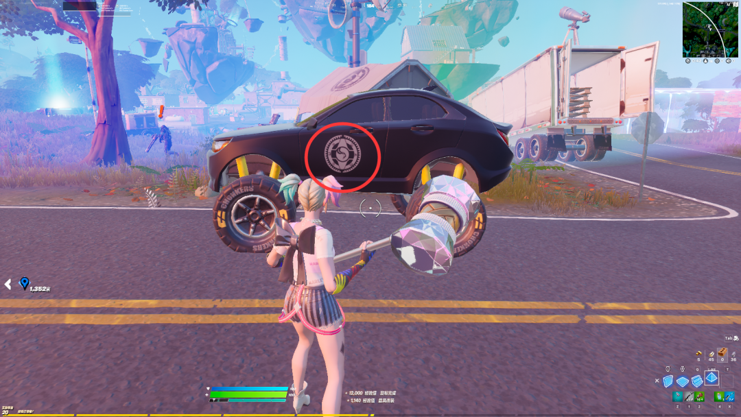 拾取輪胎道具后,找到帶有標識的車輛,將輪胎裝上并駕駛至規定距離就能完成任務。
