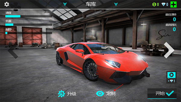 啟動瘋狂賽車駕駛游戲,在琳瑯滿目的車型里挑選出你鐘愛的跑車,隨后點擊進入車輛升級界面。