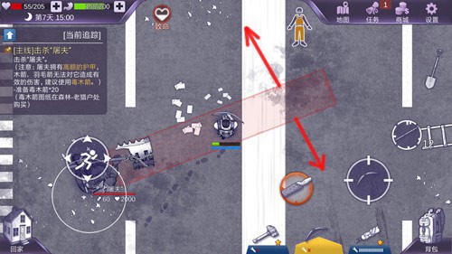 屠夫的第一個技能為扇形攻擊,靠近時會觸發。該技能覆蓋范圍大但距離有限,因此要保持適當距離,看到攻擊提示后迅速遠離(也可加速撤離),待其攻擊間隙使用毒木箭反擊。
