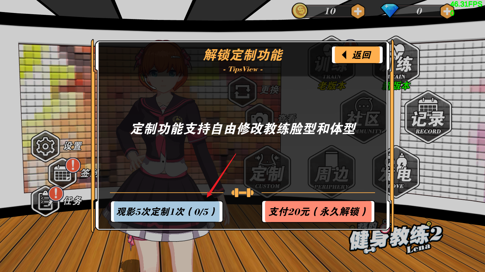 這是一個專注于“老婆”養(yǎng)成的游戲系統(tǒng),玩家能夠操控游戲內(nèi)角色進(jìn)行健身活動以達(dá)成任務(wù)目標(biāo),進(jìn)而解鎖各式各樣的服裝、動作等豐富內(nèi)容。