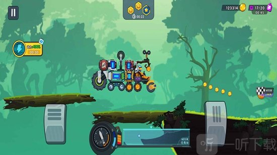 進(jìn)入游戲后,左邊的按鍵用來控制剎車,右邊的按鍵則負(fù)責(zé)油門加速。在平地上長(zhǎng)按油門鍵能夠讓車速快速提升,同時(shí)輪胎的轉(zhuǎn)速也會(huì)慢慢增加。