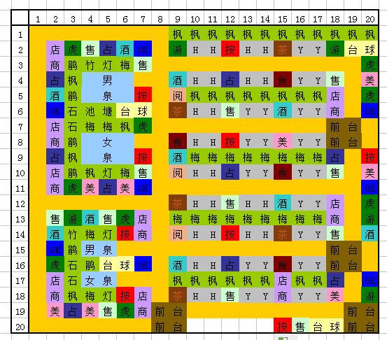 黃色:地板顏色。白色:空置區域,可隨意擺放。