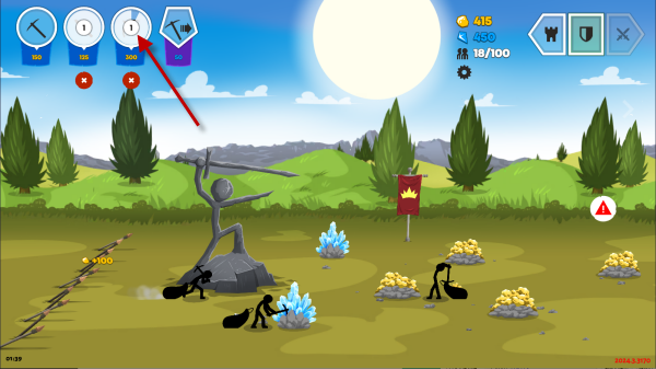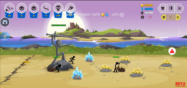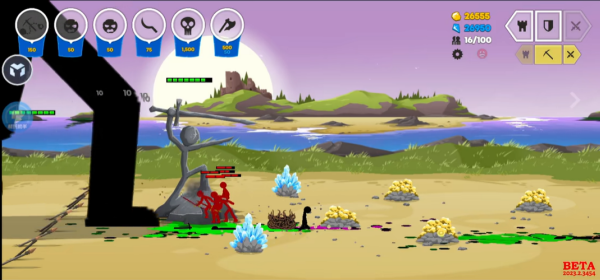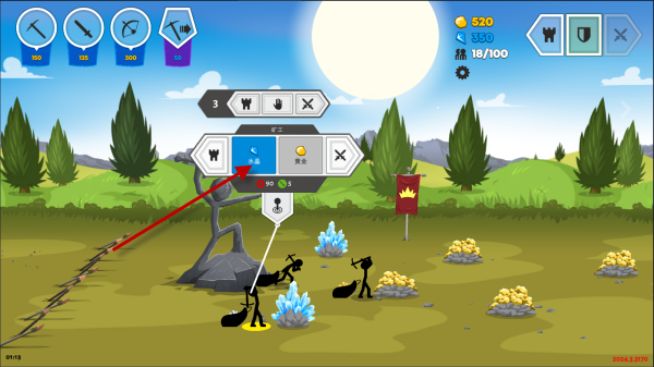 戰(zhàn)斗打響后,首要任務(wù)是收集礦石資源,這是制造火柴人的基礎(chǔ)。