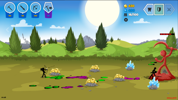 積累一定資源后,即可召喚具有戰(zhàn)斗力的火柴人待命。
