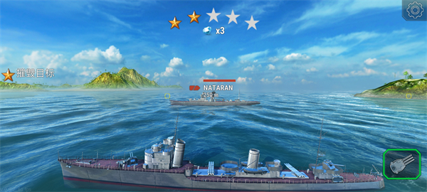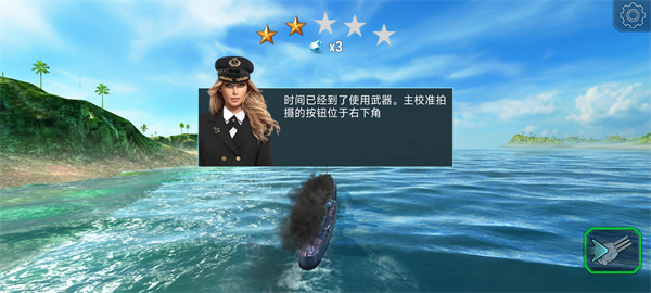 當戰艦性能達到標準后,可通過點擊屏幕右下角的武器按鈕發起攻擊。