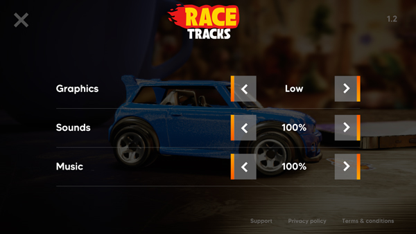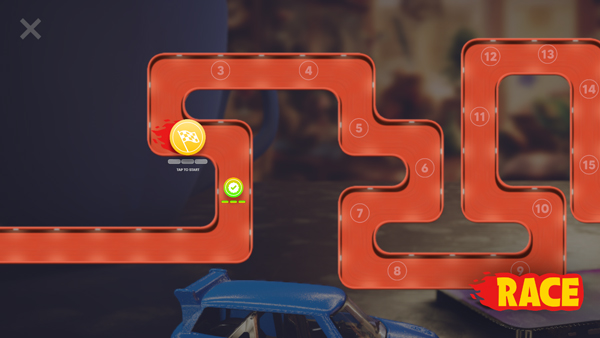 設置完成后,在左側挑選一輛心儀的賽車,接著點擊右下角的RACE按鈕,再選擇想要挑戰的關卡。