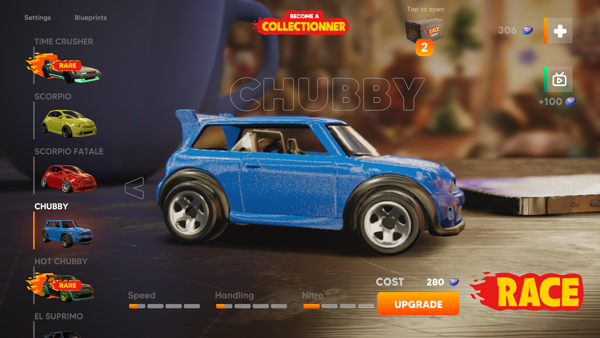 每次完成比賽后,你會得到三個獎勵箱,開啟后有機會獲得新賽車或裝飾品。