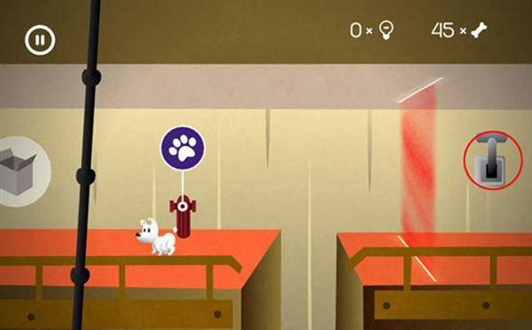進入第六章后,我們的主角米皮小狗抵達了一處神秘的實驗室。剛到這里時,一道紅色電子門將它的去路攔住。這時,只要點擊圖里標注的閘門,調整好電子門的位置,再把它開關一次,就能順利通過了。