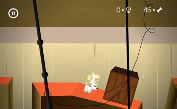 繼續往前走,你會碰到一個箱子。把箱子推到右邊的溝槽里,接著跳上去。這里還會有一根骨頭,別忘了收集呀!
