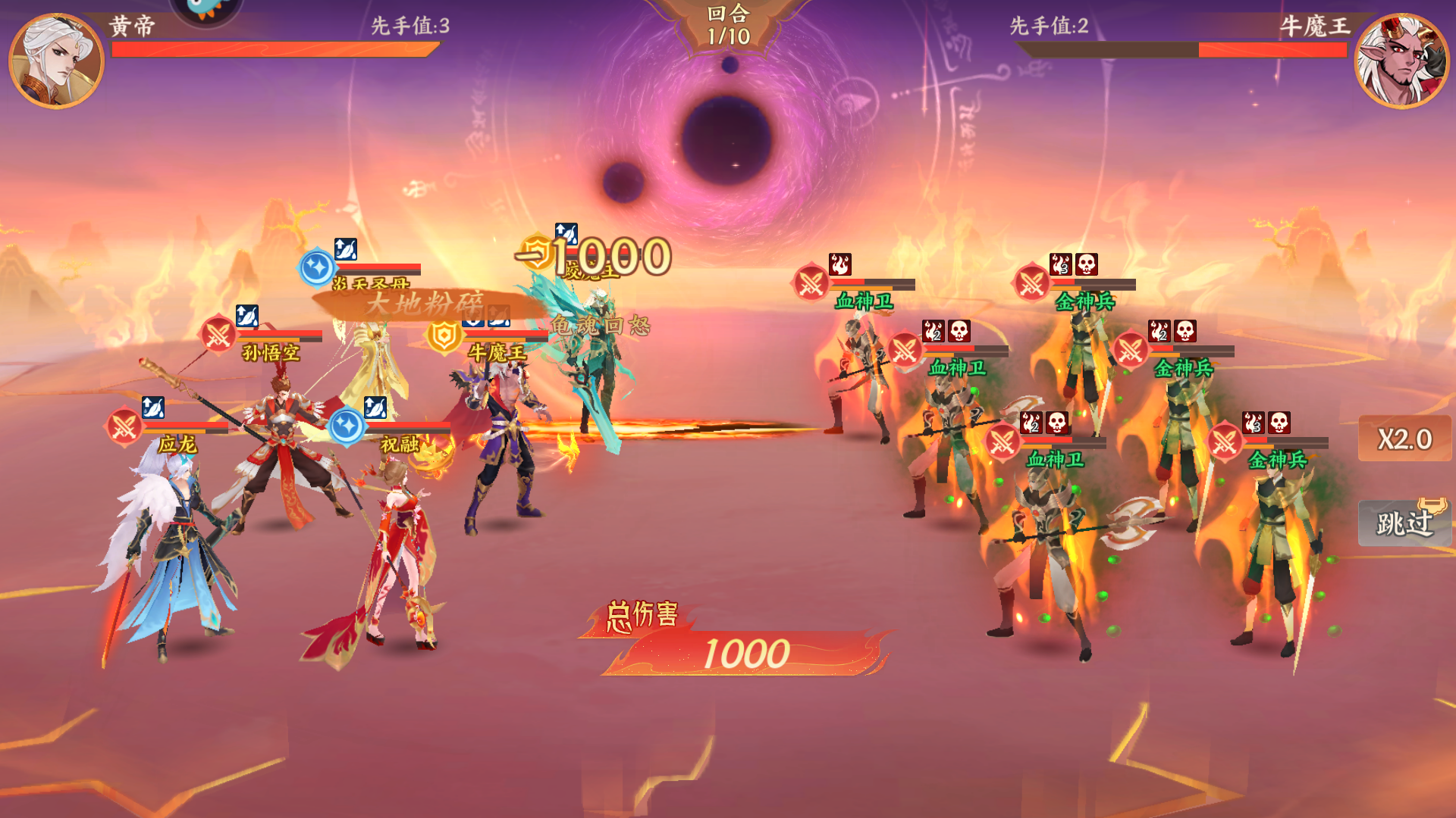 大地崩裂:對敵方單體神靈造成攻擊110%的物理傷害。
