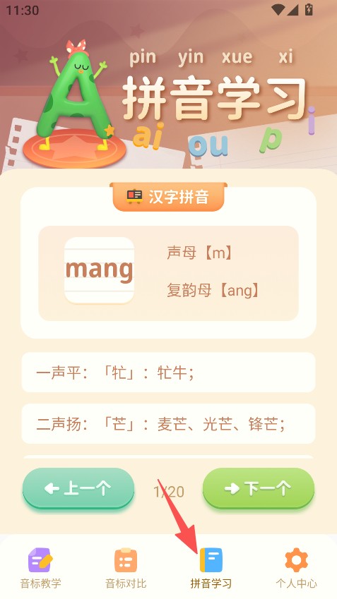米粒學拼音是一款手機拼音學習應(yīng)用,能夠助力孩子們輕松開啟拼音學習的旅程。