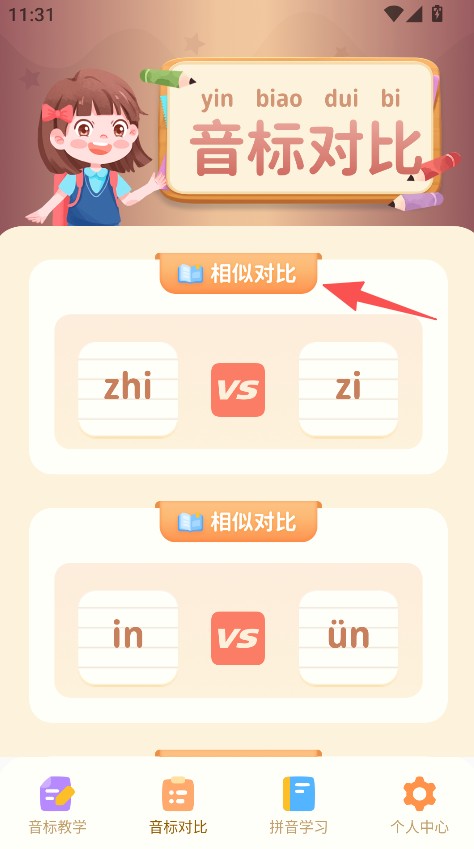 點擊音標對比選項,就能查看相似音標的對比內(nèi)容,幫助你區(qū)分那些容易混淆的音標。