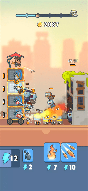 通過指定數量的關卡后,會解鎖多種強力武器。持續收集各類資源,用于升級塔樓和提升生命值;擊殺更多僵尸獲取金幣,以此強化戰斗力與移動速度——務必努力存活下去!