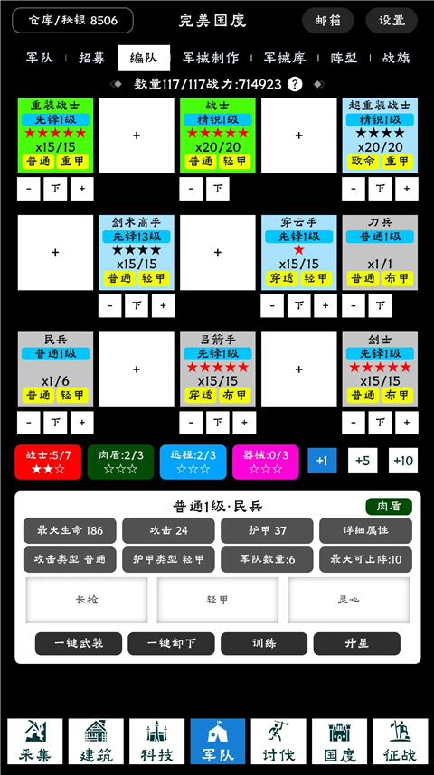 科技點出綠兵后,就能購買綠戰(zhàn)士、重戰(zhàn)士,以及白色劍士和弓箭手了。