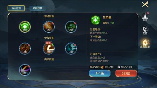 加入家族后,就能開(kāi)啟家族技能功能。你可以消耗貢獻(xiàn)和銀幣來(lái)激活并升級(jí)這些技能,從而獲得屬性上的提升。