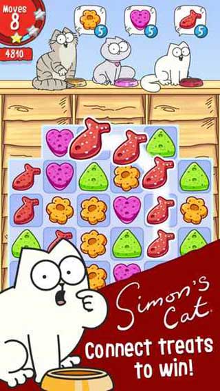 西蒙的貓是一款獲同名動漫授權的休閑消除類手機游戲,玩家將化身原作主角西蒙的貓,為奪回被邪惡烏鴉搶走的美食,與伙伴們并肩作戰,和烏鴉展開激烈對決。游戲玩法與傳統三消相似,玩家需合成三個及以上相同圖案完成消除,不過本作除橫向、縱向消除外,還支持斜向消除,提升了操作空間,助力玩家在關卡中沖擊更高分數。此外,游戲擁有超400個特色關卡等待挑戰,喜愛休閑游戲的玩家可別錯過,快來體驗吧!