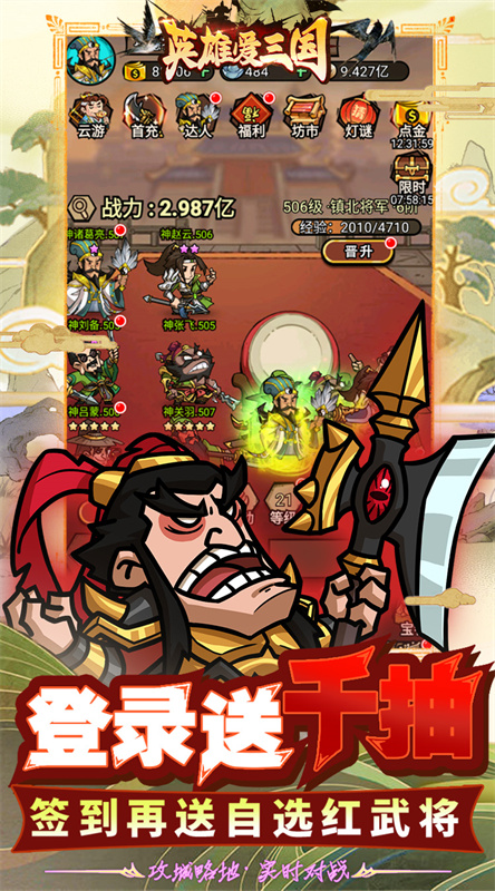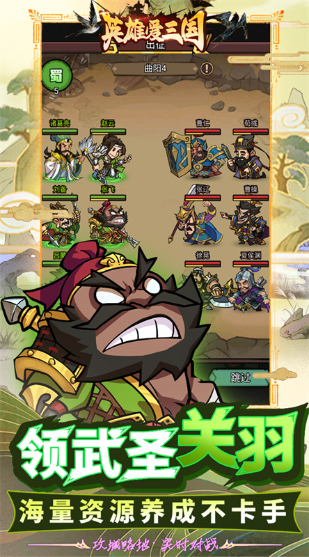 在游戲里,玩家可以招募并培養不同時期的三國英雄。無論是劉備、曹操還是孫權,每個英雄都具備獨一無二的技能與屬性。和英雄們并肩作戰,打造專屬于你的最強三國戰隊。