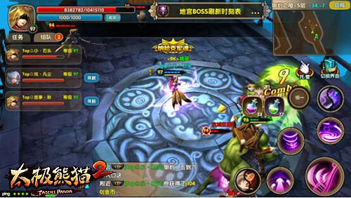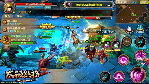太極熊貓2運用3D端游物理引擎,結合最真實的動作捕捉技術,融入火、冰、電、風等多元元素,可輕松達成一鍵連招,使打擊感更富爆破力與多變性。