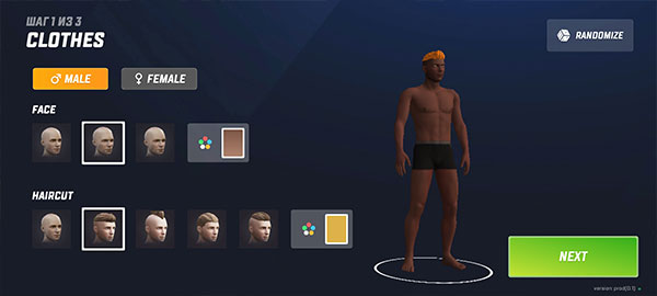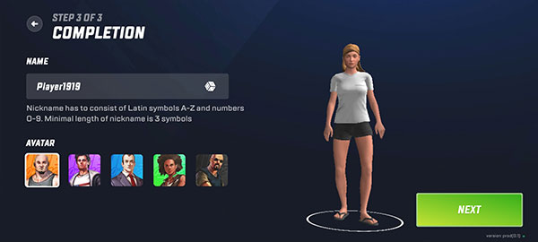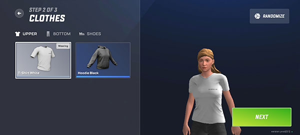 為角色挑選一套衣服,這套將作為初始免費服裝;選定后點擊NEXT按鈕,即可進入后續流程。