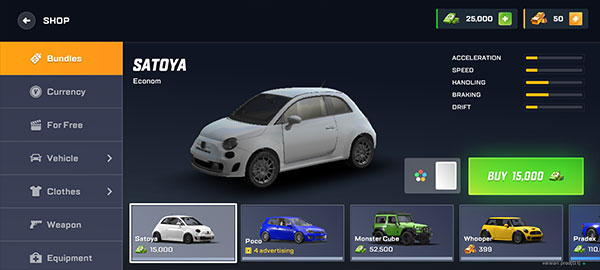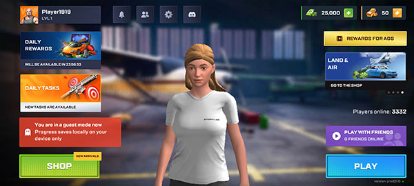 隨后正式進入游戲界面,界面左上角顯示著昵稱信息,右上角則呈現當前持有的資金數額,點擊左下角的SHOP按鈕即可進入商店。