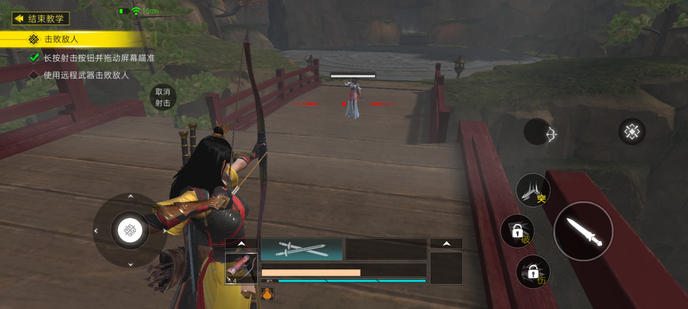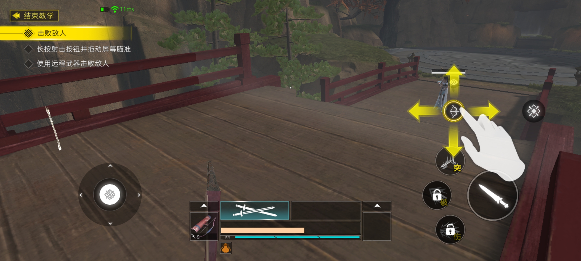 如圖所示,使用遠程武器擊敗敵人即可成功