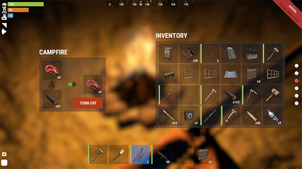 先別急著建家,畢竟每個服務(wù)器的地圖都是隨機(jī)生成的。剛開始的時候,我們最好四處探索一下,尋找物資刷新的地點(diǎn),像大鐵球、工廠、核電廠、衛(wèi)星雷達(dá)、峽谷這些地方都有可能。這得看運(yùn)氣,說不定就能遇到輻射區(qū)呢——比如我之前就碰巧走到了大鐵球那里。找到輻射區(qū)后,馬上用石頭砍10下樹,收集100個木頭;接著撿地上和身上的“麻類纖維”,湊夠30個布。之后打開背包做一個睡袋,再把它放到快捷欄里。