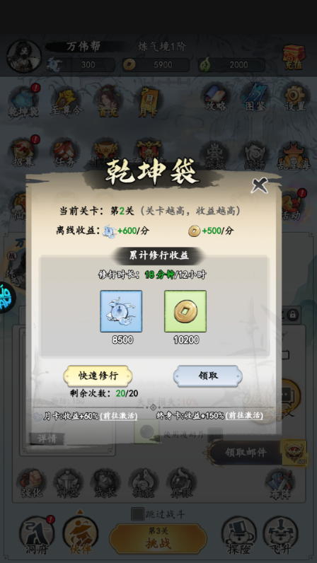 游戲內設有掛機玩法,即便處于離線狀態進行掛機修行,也能獲取修行收益。