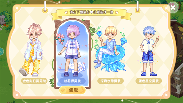 創建專屬角色,上線即可領取四套服裝中的任意一套。