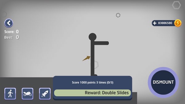 通過長按左下角DISMOUNT控制火柴人行動