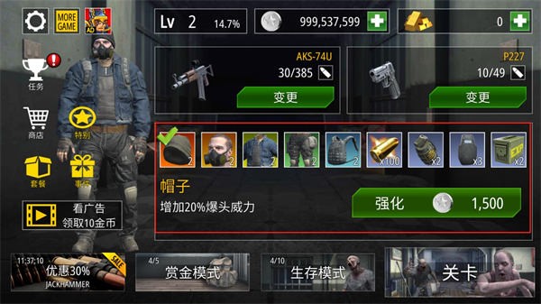 已經解鎖的武器還能消耗銀幣升級,并且子彈是實時消耗的,得及時補充。