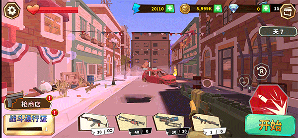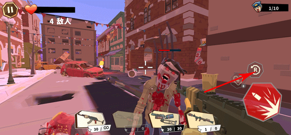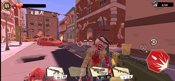 盡管采用低模卡通風格,游戲卻運用FPS視角,使玩家能更直觀地直面僵尸來襲的場景,再搭配血量條、精準瞄準等設計,進一步增強了真實感與壓迫感。