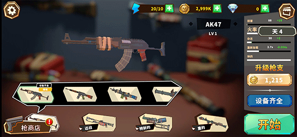 點擊槍商店,在這里既能購買各類槍械,還能對槍械進行升級。