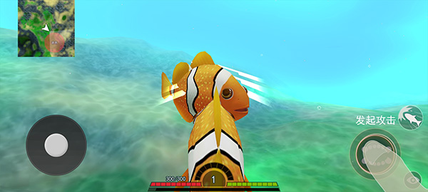 遇到其他魚兒之后,點擊右下角第一個鍵位發起攻擊;