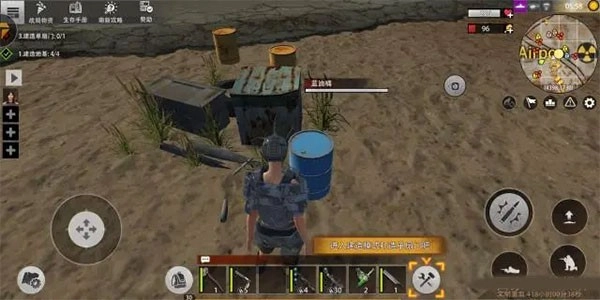 地圖上存在一些玩家會競相爭奪的建筑群,在這些建筑群里能找到武器補給箱,而武器是拆家、攻擊其他玩家時不可或缺的。不過,進入地圖上的建筑需要先裝備防輻射口罩,否則角色會持續掉血,這種防輻射口罩同樣是從路邊油桶中隨機爆出的物品。