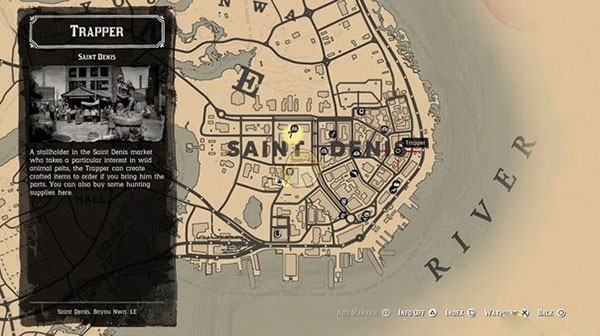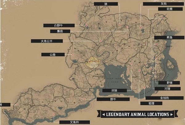 這樣我們就能依據傳奇動物坐標的差異,在完成獵殺后把它們送到距離最近的捕獵人那里。至于像傳奇郊狼這類和所有捕獵人距離都較遠的傳奇動物,我們可以先騎馬到附近的羅德鎮,之后再乘車前往圣丹尼斯。