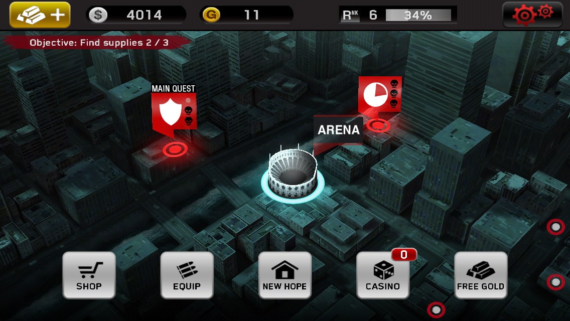 地圖主界面的下方排列著商店、裝備、信息統計、老虎機和金幣購買這幾個選項;界面上方則會顯示你的游戲幣、金幣數量,以及角色當前的經驗值。