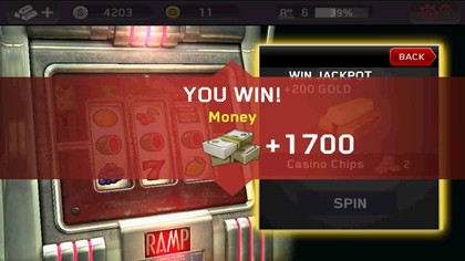 另外,《死亡扳機》里還設有一個老虎機系統,使用時需要消耗籌碼?;I碼可以用金幣購買,不過游戲初期會贈送幾個,讓玩家先體驗一下。通過老虎機可以獲得游戲幣、醫療箱等獎勵,目前我還沒統計出具體有哪些獎品,但應該不會讓大家失望。當然,能否抽到好東西全看運氣,具體的玩法和獎勵就等各位玩家親自去體驗和總結啦。