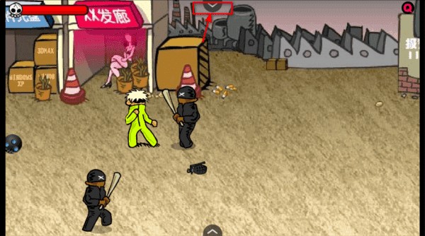 抓住敵人:當處于格斗狀態(tài)時,朝著敵人移動,直至身體碰到對方,主角就會自動抓住這個敵人。這時,按下攻擊鍵能攻擊敵人,按左或右鍵,可以把敵人扔出去。