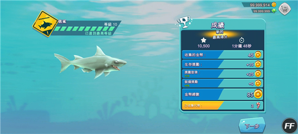 在游戲里,玩家能用金幣提升鯊魚的速度、血量和撕咬范圍,這些屬性升級(jí)后,鯊魚的捕獵能力會(huì)得到顯著增強(qiáng)。建議玩家在游戲過程中,只要有機(jī)會(huì)升級(jí)就盡量去升級(jí)。