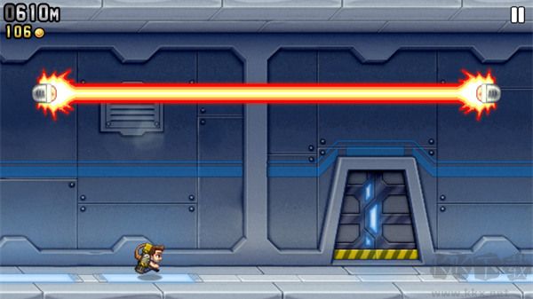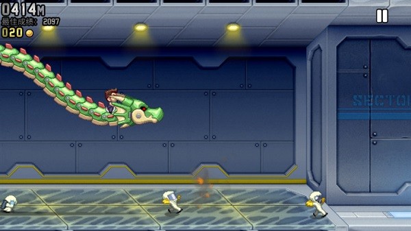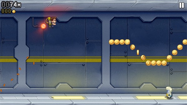 《火箭飛人》是一款橫版跑酷游戲,玩家將化身冒險家巴里——他潛入了一座遍布高科技裝置的秘密工廠,盜走了科學家們研發中的實驗性火箭飛行器。游戲的核心目標是幫助巴里借助這臺飛行器逃離工廠,過程中需避開各類陷阱與障礙,同時盡可能收集更多金幣和道具來提升分數。