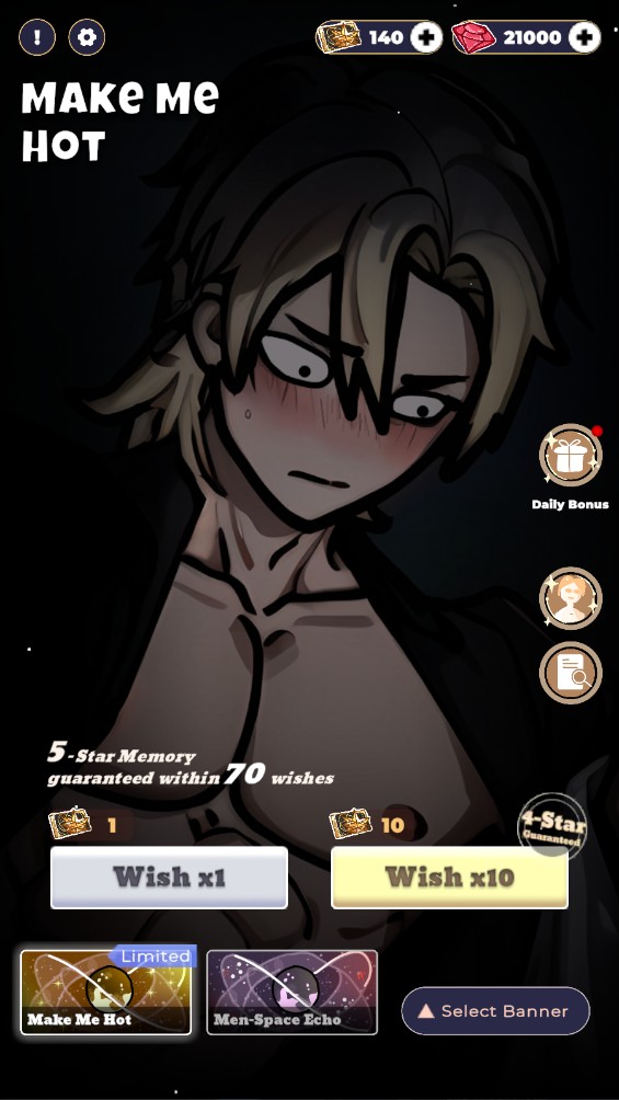 Lovely Wisher是一款趣味十足的抽卡戀愛模擬游戲,所有內容均為原創制作。收集角色是游戲的核心玩法之一,這些角色不僅外形帥氣,還極具獨特魅力。隨著收集的角色數量增加,玩家能解鎖的互動內容也會更加豐富多樣。游戲的抽卡機制簡單易懂,整體玩法輕松有趣,喜歡這類游戲的玩家千萬不要錯過這款Lovely Wisher!